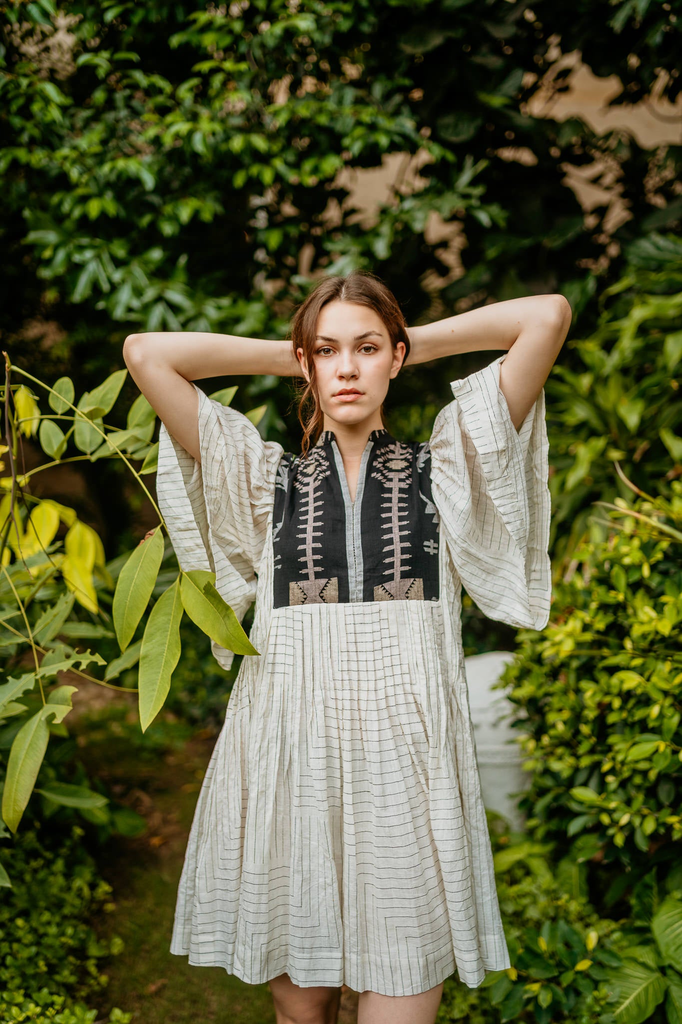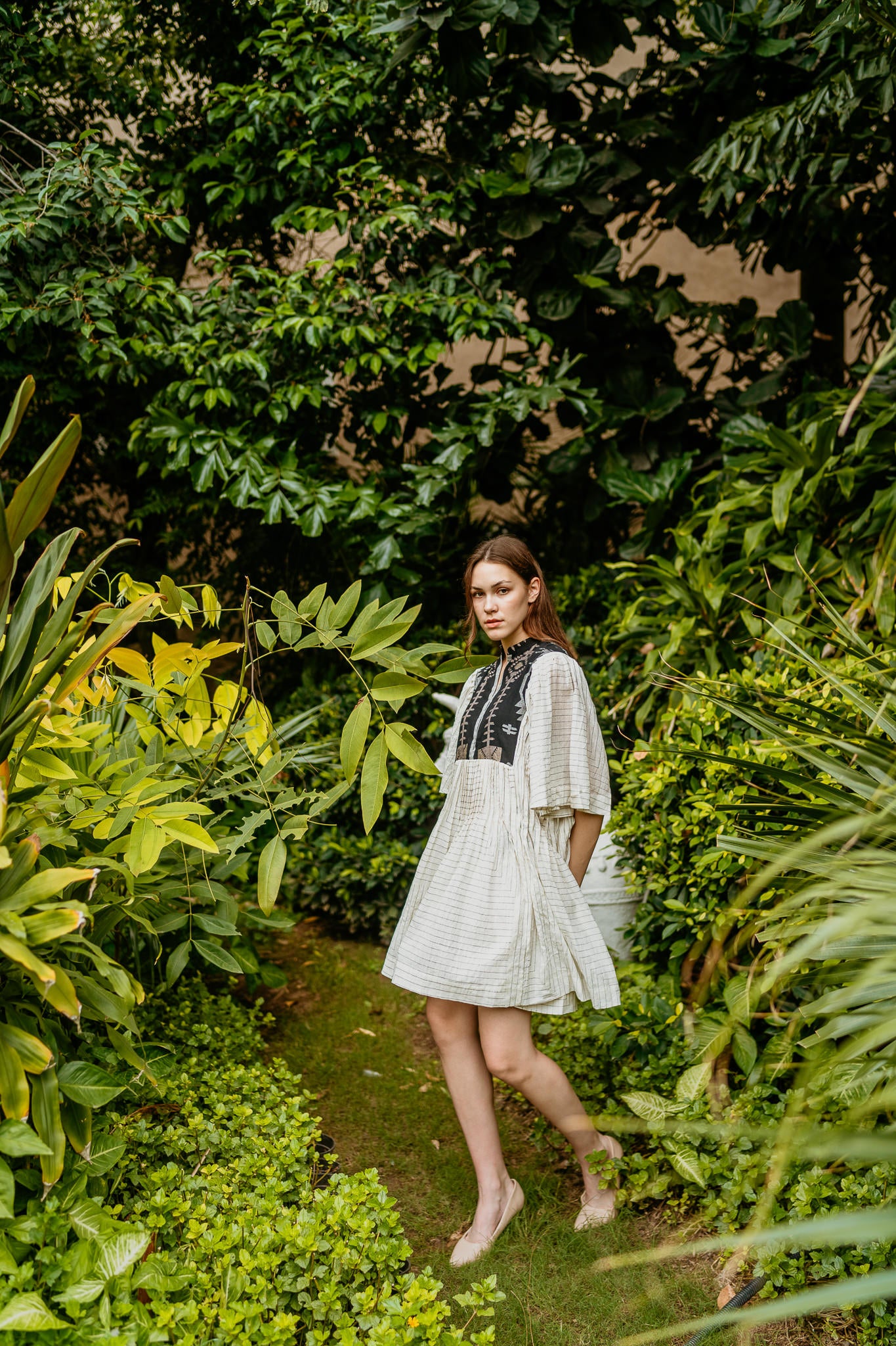 A short white dress is a delightful and elegant garment that embodies the traditional craftsmanship of jamdani weaving.